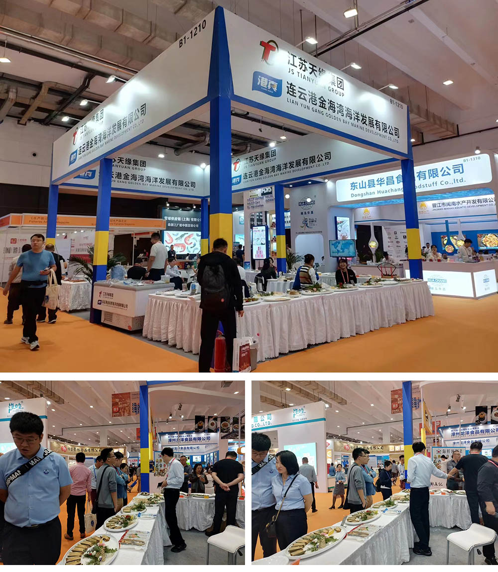 展會(huì)現(xiàn)場(chǎng),人頭攢動(dòng),熱鬧異常,金海灣憑借造型各異的海參擺盤(pán)、新鮮碩大的黃魚(yú)、飽滿多汁的海蟶等招牌海產(chǎn)品吸引觀眾相繼駐足,接連問(wèn)詢洽談,合作意向強(qiáng)烈。同時(shí)每天展示旗下產(chǎn)品各種烹制方法,并讓現(xiàn)場(chǎng)觀眾免費(fèi)品嘗,便捷可口大家直呼過(guò)癮,現(xiàn)場(chǎng)收獲一致好評(píng)。
