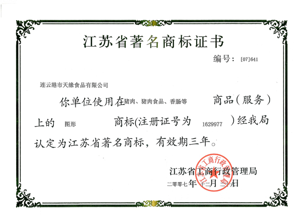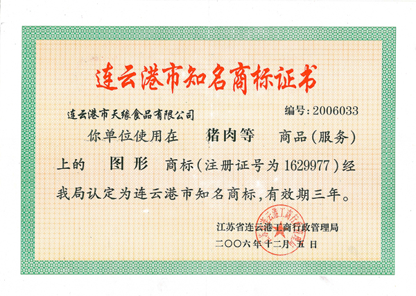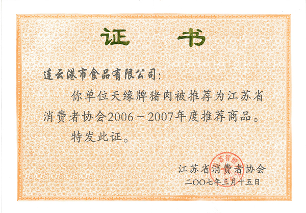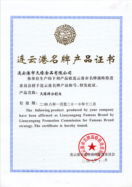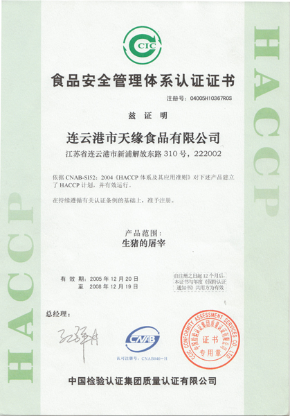 經(jīng)過多年的努力,公司先后取得了一定的成績。公司是政府“菜籃子”工程主要的肉類加工供應(yīng)商,是國家儲備肉定點(diǎn)廠和商品豬活體儲備基地,通過了省無公害農(nóng)產(chǎn)品認(rèn)定和無公害畜禽產(chǎn)地認(rèn)定;豬肉及肉制品的生產(chǎn)過程也先后通過了GB/T22000、QS體系認(rèn)證;“天緣”品牌先后多次被認(rèn)定為連云港市知名商標(biāo)、江蘇省著名商標(biāo);產(chǎn)品被評為江蘇省名牌農(nóng)產(chǎn)品、連云港市名牌產(chǎn)品、連續(xù)多屆被省消協(xié)評為放心食品、推薦商品;企業(yè)先后被評為市農(nóng)業(yè)產(chǎn)業(yè)化龍頭企業(yè)、信用管理示范企業(yè)、服務(wù)滿意單位、質(zhì)量管理先進(jìn)單位、連云港市優(yōu)秀民營企業(yè)、世界肉類大會優(yōu)秀參展商。多年來為政府“菜籃子”工程、保障食品安全和帶動廣大農(nóng)民致富作出了突出貢獻(xiàn)。